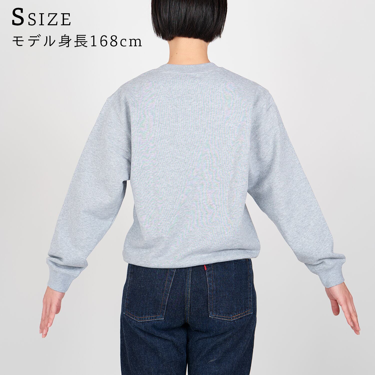 サイズはユニセックスのSとMの2種類をご用意。Sは綺麗めに来たい方に、Mは男性や、下に重ね着をしてゆったり着たい方におすすめです。